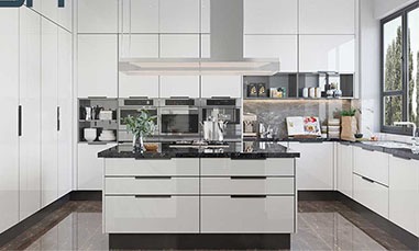 PVC kitchen is made by MDF wrap with PVC sheets. Lacquer is made by MDF painted. Lacquer kitchen doors could be double sides painted but for PVC, mostly we just make single side, back side melamine. Lacquer kitchen is more durable than PVC kitchen, feel better when touch the door panels, looks nicer after installation and made with finger pull style. So the price is higher. But the production time for PVC kitchen is 5 to 10 days shorter than lacquer kitchen.